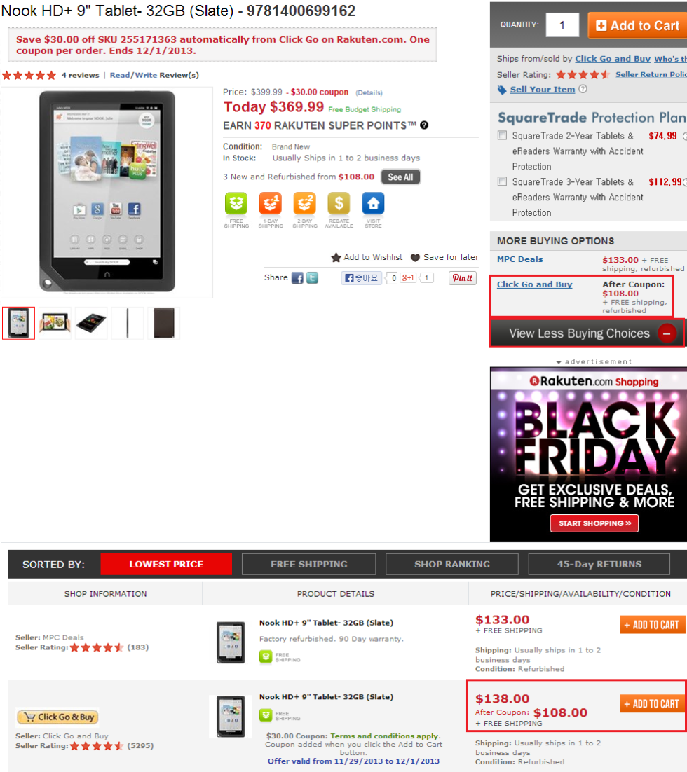 기본 $108에 $10 할인되어 $98이네요.