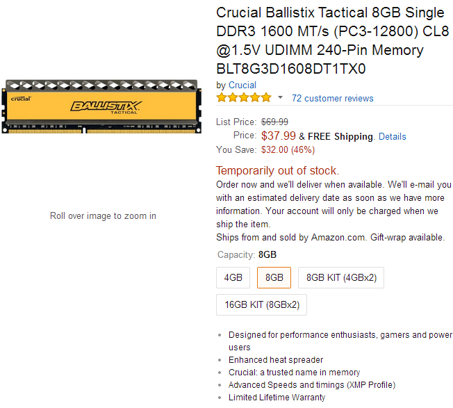 Crucial Ballistix Tactical 8GB 샀네요 ㅎㅎ