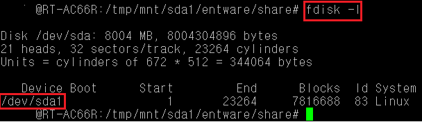 보통 dev/sda1입니다.