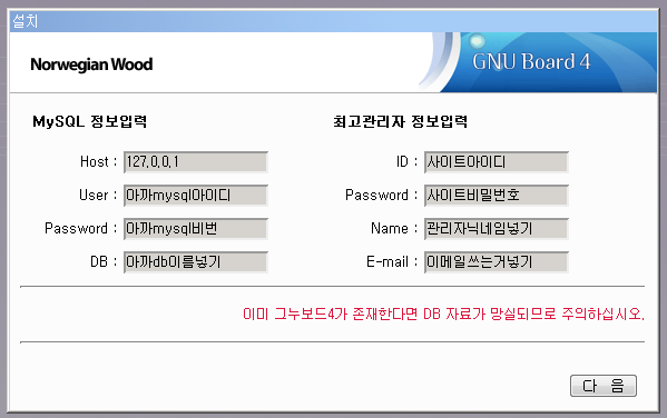 "이젠 그누보드를 깔아봅시다" 직전까지 하시고