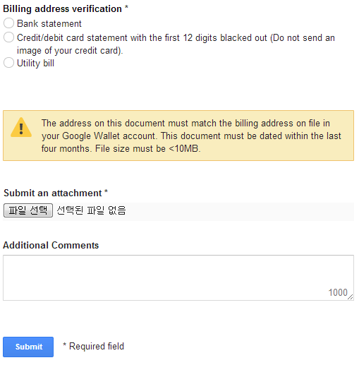 그래서 운전면허증 스캔하고, 구글 월렛에 저장된 주소지가 나와 있는 카드명세서까지 다 스캔해서 보냈습니다.