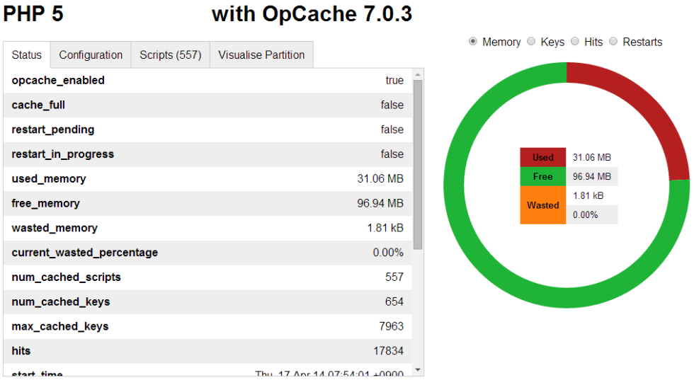 위와 같이 OpCache를 모니터링할 수 있습니다.