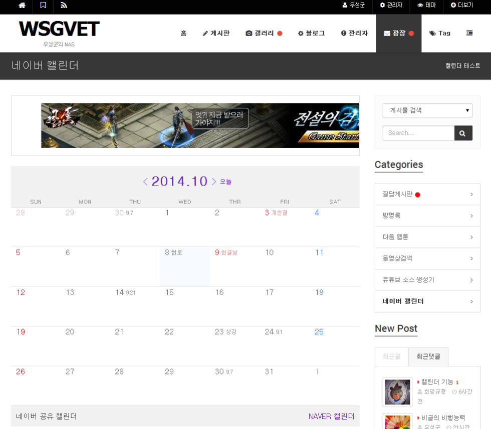 그누보드5 아미나ASR 테마에 네이버 캘린더 설치하기