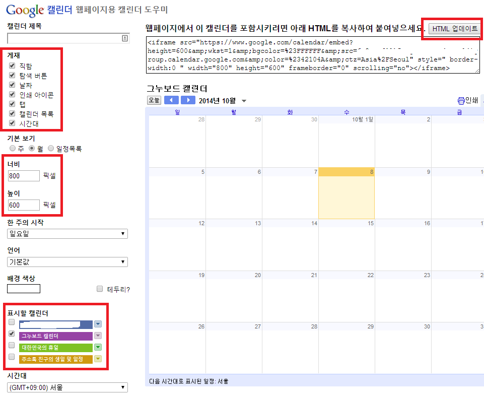 <iframe src="구글달력주소" width="800" height="600" frameborder="0"></iframe></object>