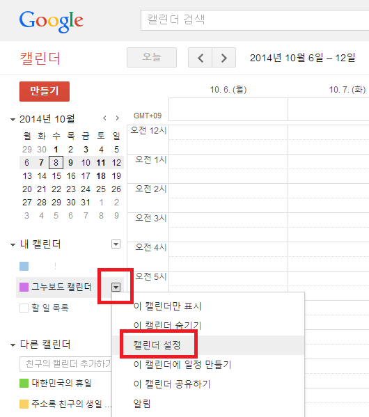 구글 캘런더에 들어가서 위와 같이 캘린더 설정에 들어갑니다.