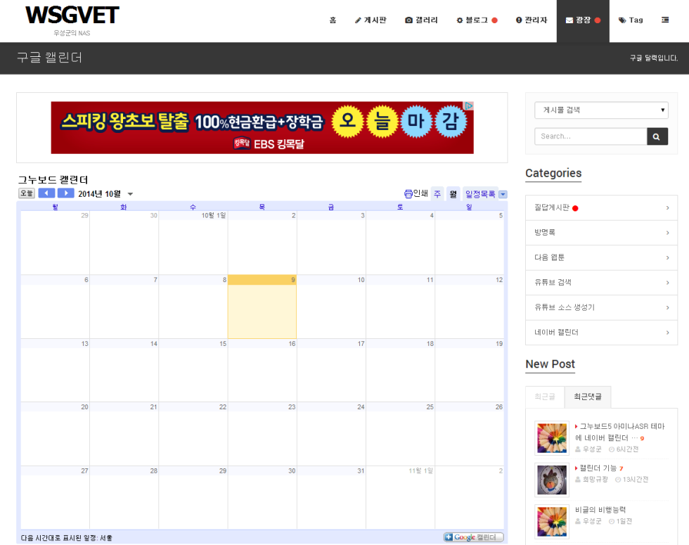그누보드5 아미나ASR 테마에 구글 캘린더 설치하기