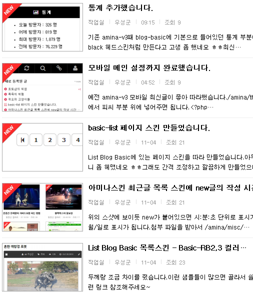 아미나스킨 최근글 목록 스킨에 new글의 작성 시간 표시하기 2