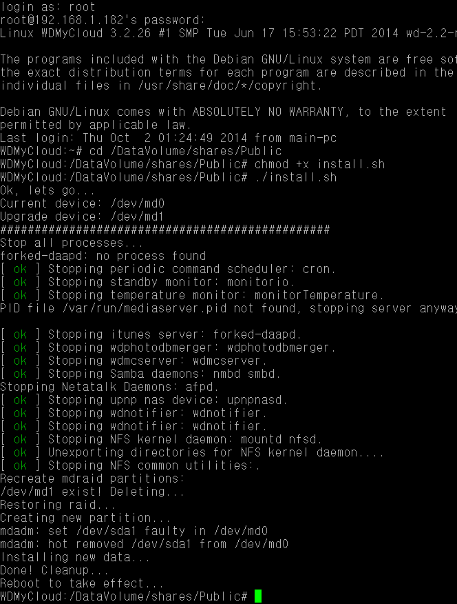 위 명령어로 모든 패키지를 업그레이드합니다. (기존 WD 순정 펌웨어에서는 불가능한 명령어였죠 ^^)