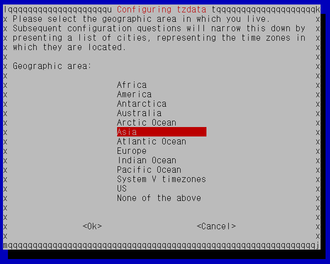 영어가 제대로 나오면 Asia 엔터 후 Seoul 엔터 누르면 됩니다.