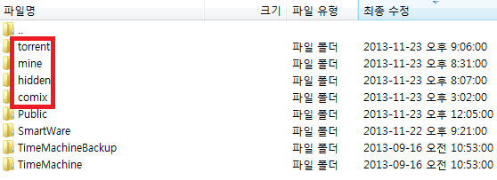 위에 빨간색 박스가 이번에 에어코믹스와 토렌트를 위한 폴더인데요.