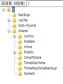 위의 test 사용자는 /shares 라는 기본폴더부터 시작합니다.
