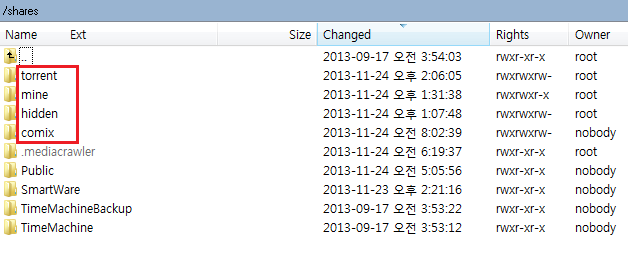 나중에 토렌트와 에어코믹스 쓸 때 권한을 777로 주는게 좋아보입니다.