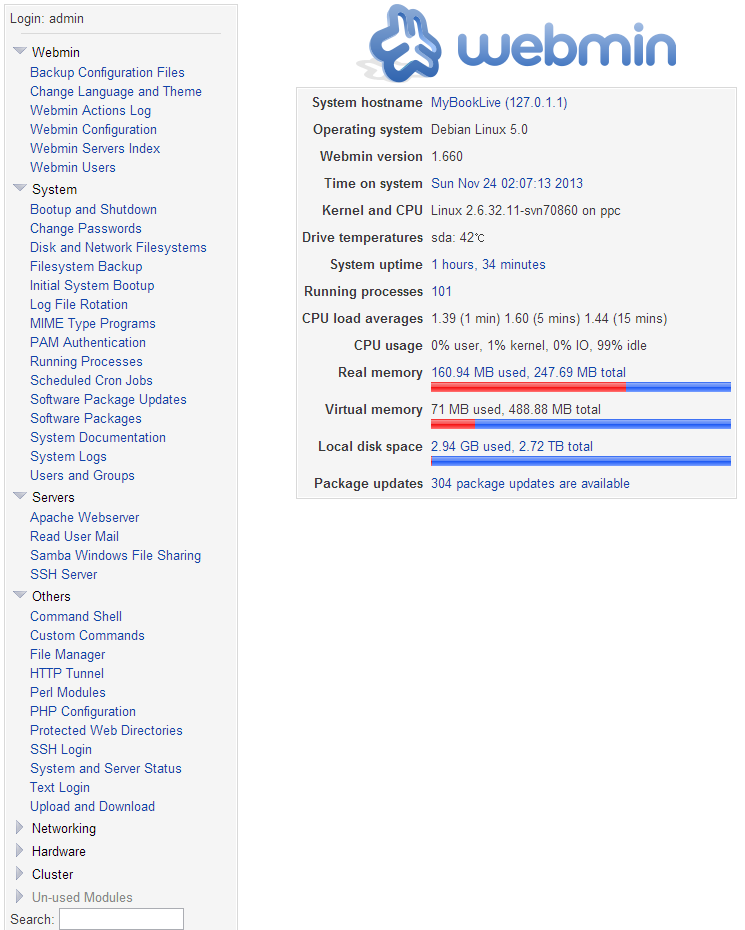 MyBookLive:~# wget http://downloads.sourceforge.net/project/webadmin/we 0/webmin-1.660.tar.gz