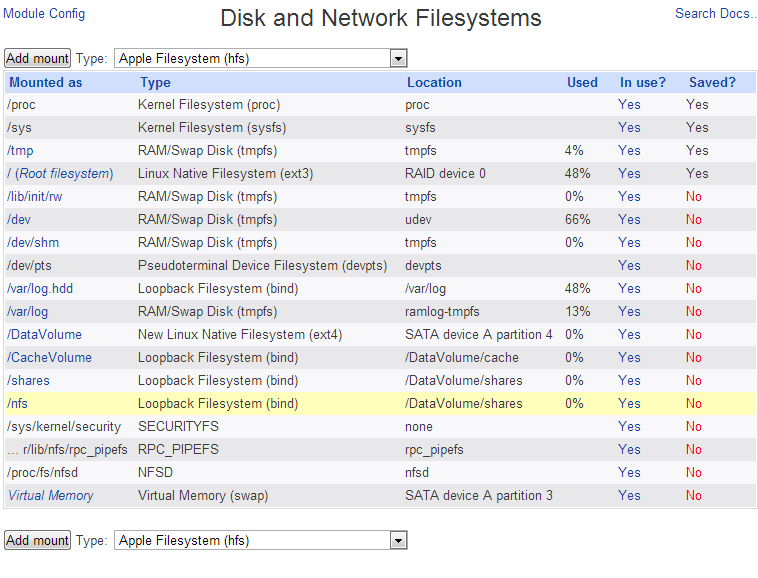 그리고 webmin이 파티션 쪽 인식을 잘하게 하기 위해 설정을 하나 더 합니다.