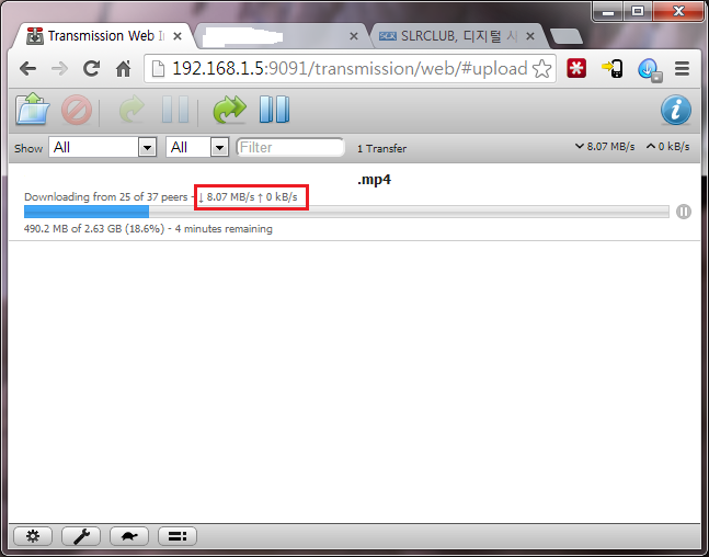 ▲ 파일을 넣고 Upload하면 토렌트 파일이 올라가고 자동으로 받아집니다.