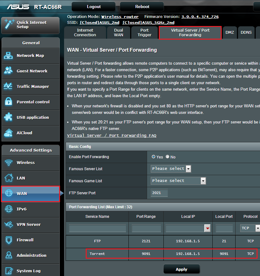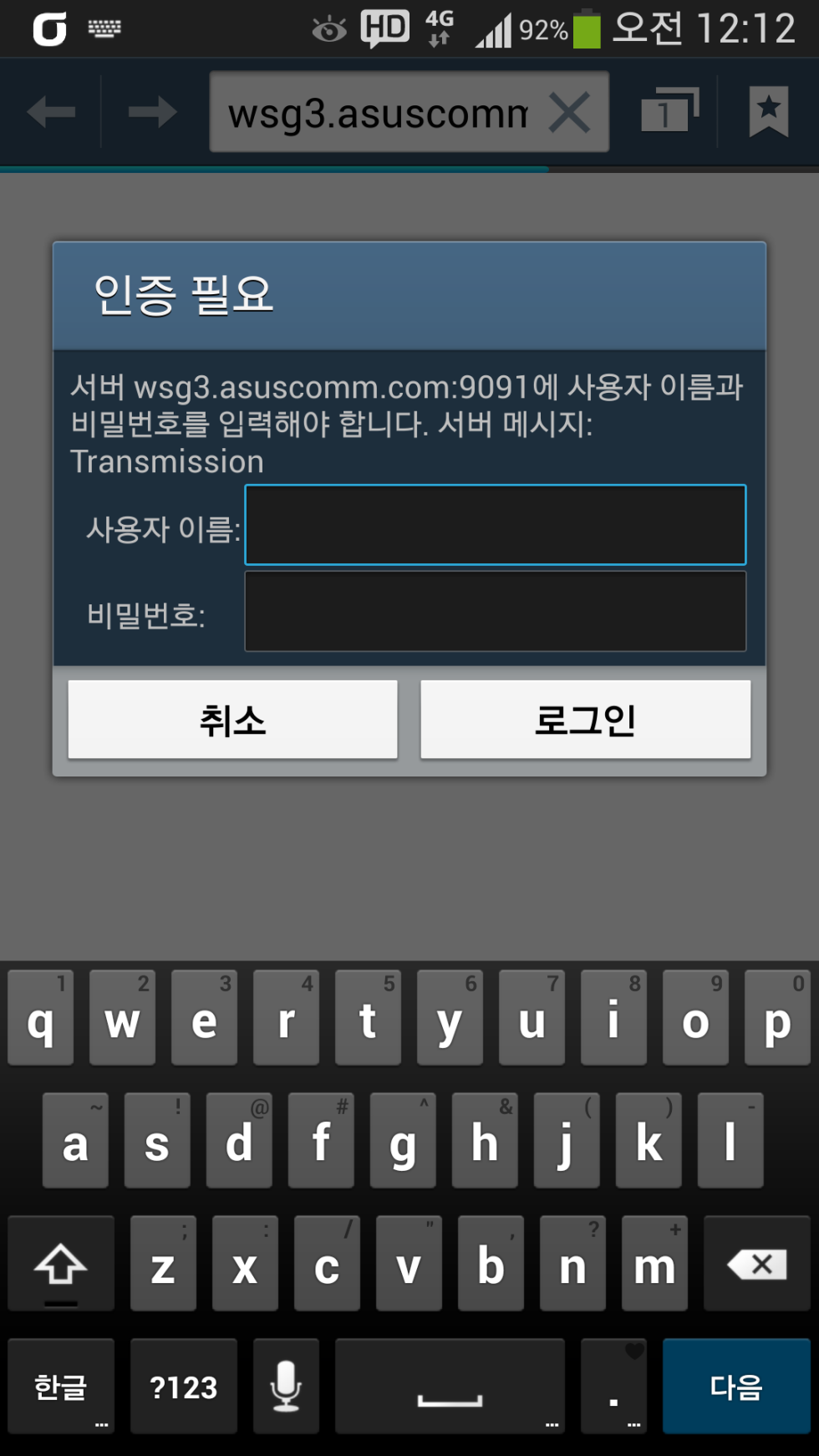 wsg3.asuscomm.com:9091로 접속하면 바로 토렌트 화면이 나와야 정상입니다.