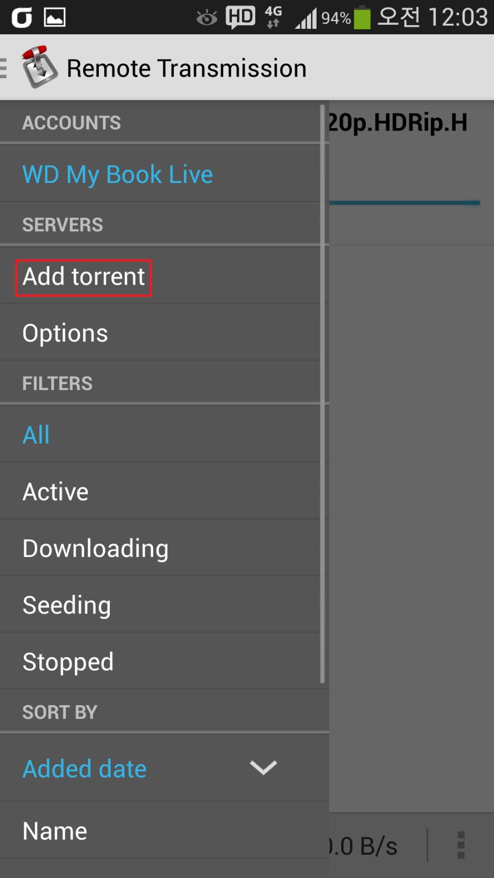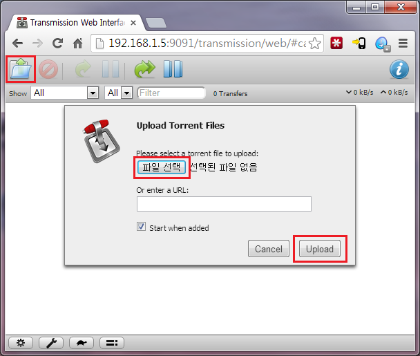 ▲ 토렌트 파일을 추가할 수 있습니다.