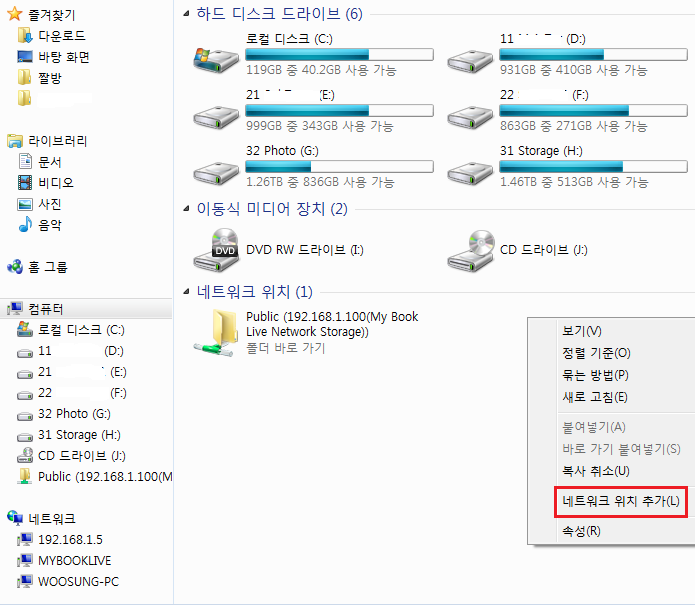 WD My Book Live Webdav 활성화 후 외부에서 네트워크 드라이브 등록하기