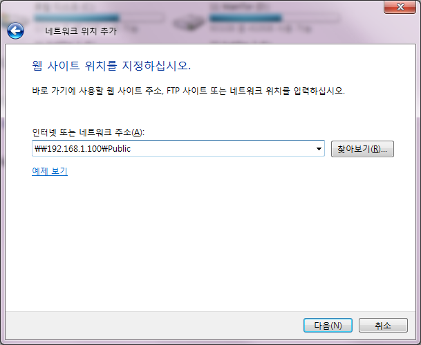 ▲ 위 스샷처럼 \\내부IP주소\Public 을 넣고 다음