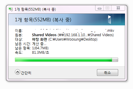 FTP보다는 덜하지만, 편의성을 생각할땐 충분히 납득할만한 속도입니다.