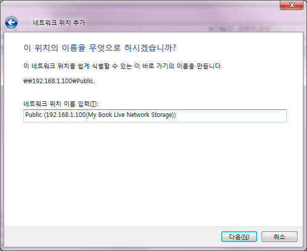 ▲ 위와 같이 다시 네트워크 위치 추가를 클릭
