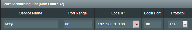 ▲ 위와 같이 적으면 됩니다. 내부포트는 무조건 80으로 해야합니다. 외부포트는 80으로 하면 적용하기 편합니다.