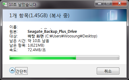 하지만 제가 쓰고 있는 시게이트 백업플러스가 인식이 되질 않아 글을 쓰지 말까 하다가 스샷 찍어둔게 아까워 올려보니다. ^^;;