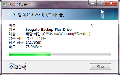 ▲ 대략 75MB/s 속도가 나옵니다.