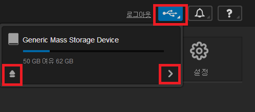 위와 같이 대시보드에서 USB안전제거(?)도 할 수 있고 인식하고 있는 내용도 볼 수 있습니다.
