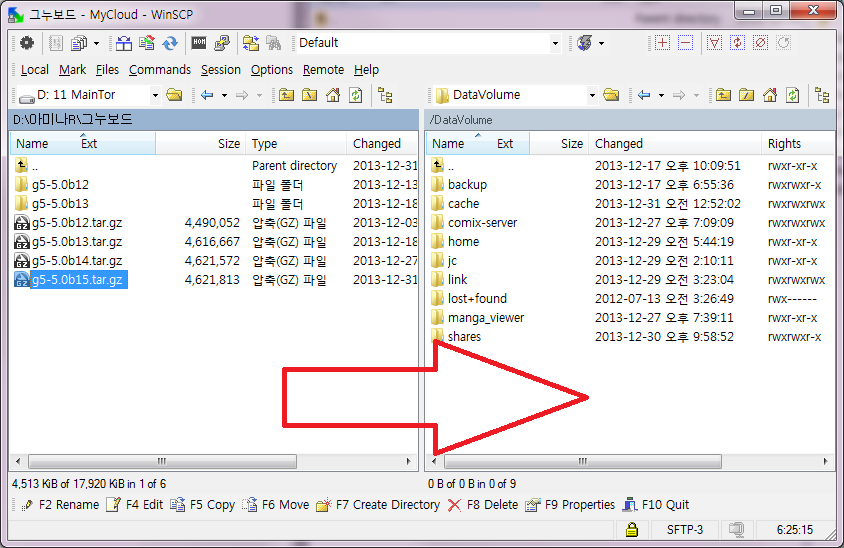 WINSCP를 이용하여 다운 받은 파일을 /DataVolume/www 으로 넣습니다.