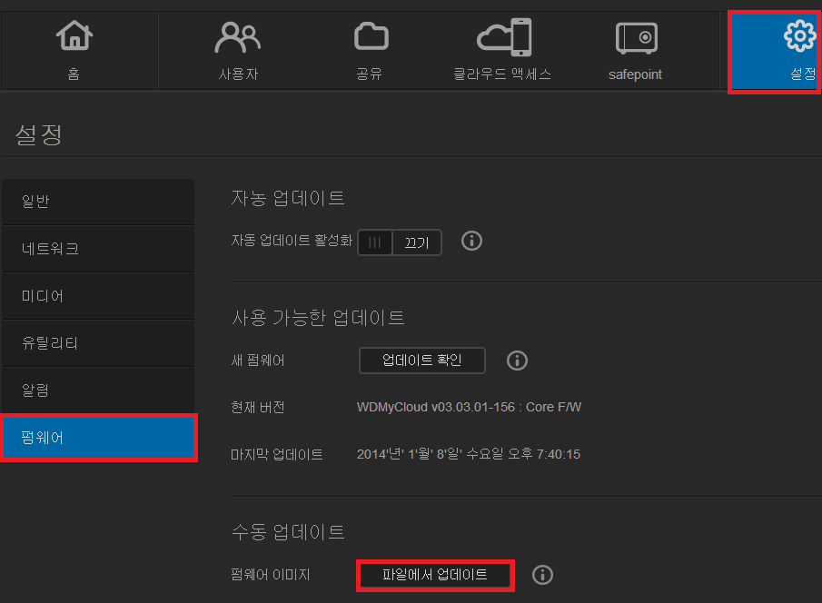 WD My Cloud 수동으로 펌웨어 업데이트 하기