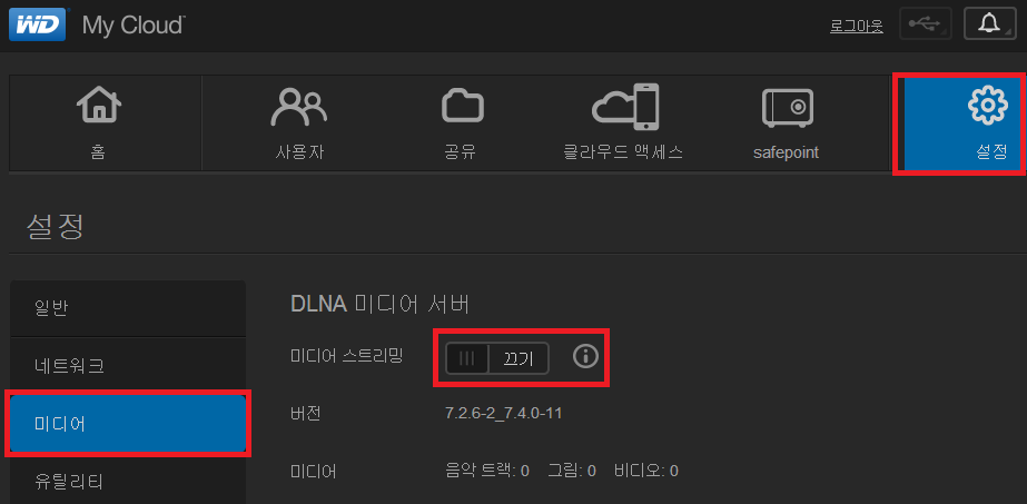 1. 대시보드에서 DLNA 서비스 끄기