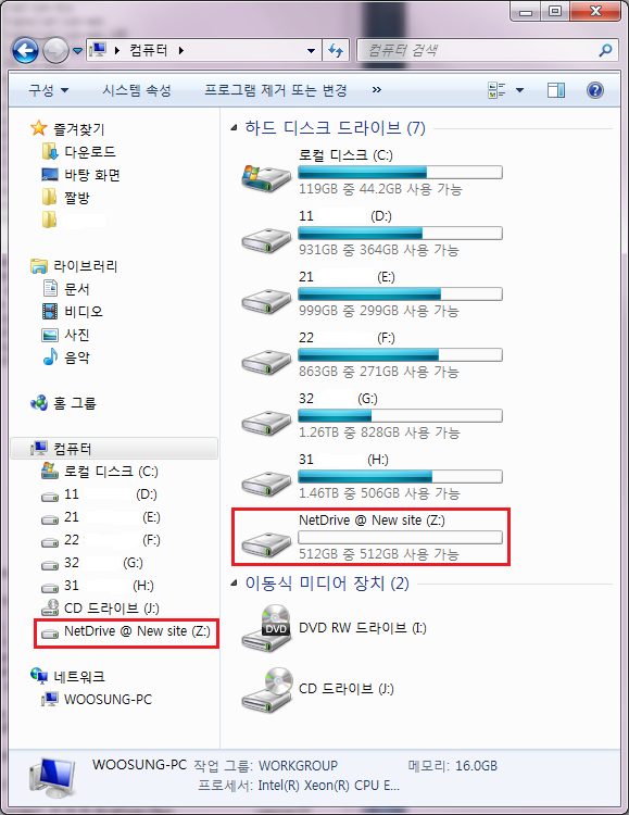 ▲ 이렇게 네트워크 드라이브로 추가된 것을 확인할 수 있습니다.