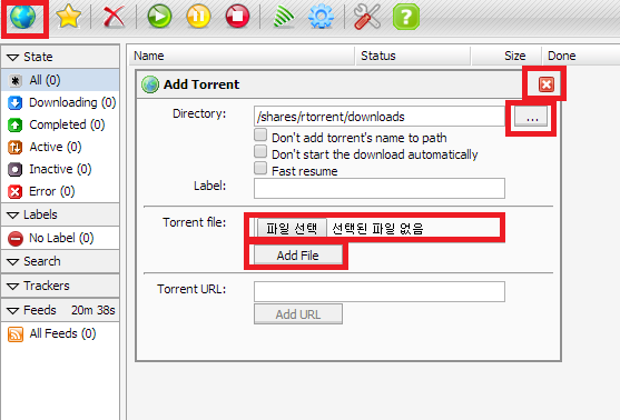 파일 선택하여 토렌트 파일을 지정한 후 Add file을 누르면 됩니다.
