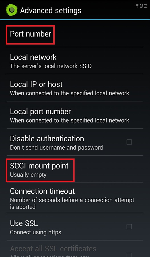 ▲ 제일 위에 Port number는 내부에서는 80을 넣고, 외부에서는 포트포워딩한 포트를 넣으면 됩니다.