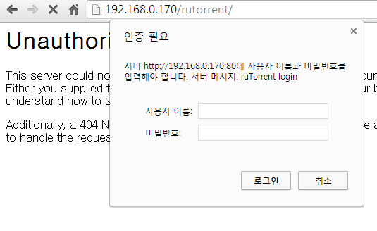 그런 후 외부에서 http://DDNS:포트/rutorrent 로 접속하면 됩니다.