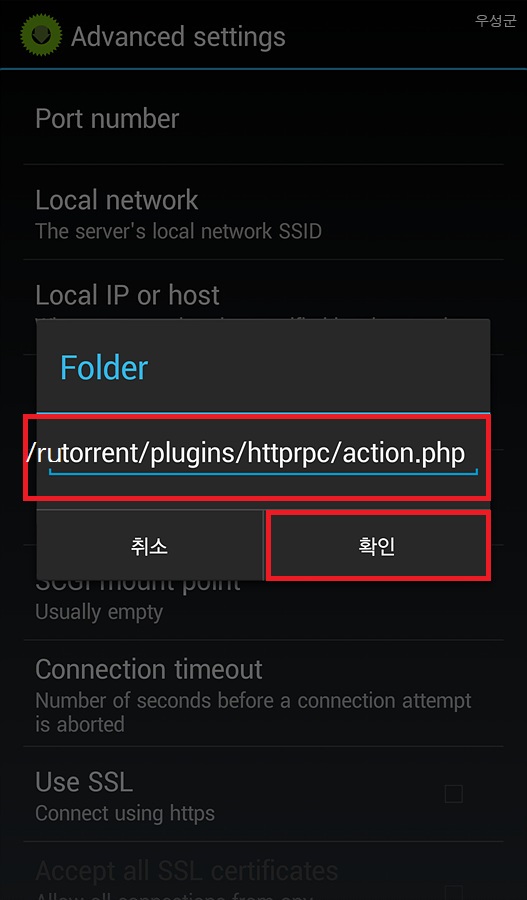 ▲ 위와 같이 /rutorrent/plugins/httprpc/action.php 를 넣습니다.