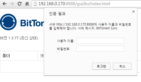 8. 외부네트워크에서 비트토렌트 싱크 관리자 화면에 접속하기