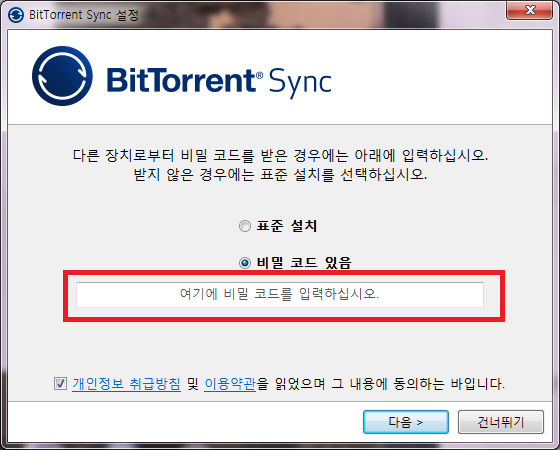 공식 다운로드 링크 : http://www.bittorrent.com/intl/ko/sync/downloads