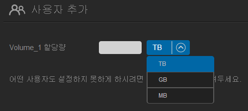 ▲ 사용자 추가 부분에서 특이점은 하드 용량을 지정할 수 있다는 것입니다.