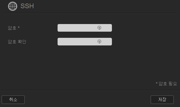 SSH는 켠 후 구성을 눌러서 암호를 업데이트 해줘야 합니다.