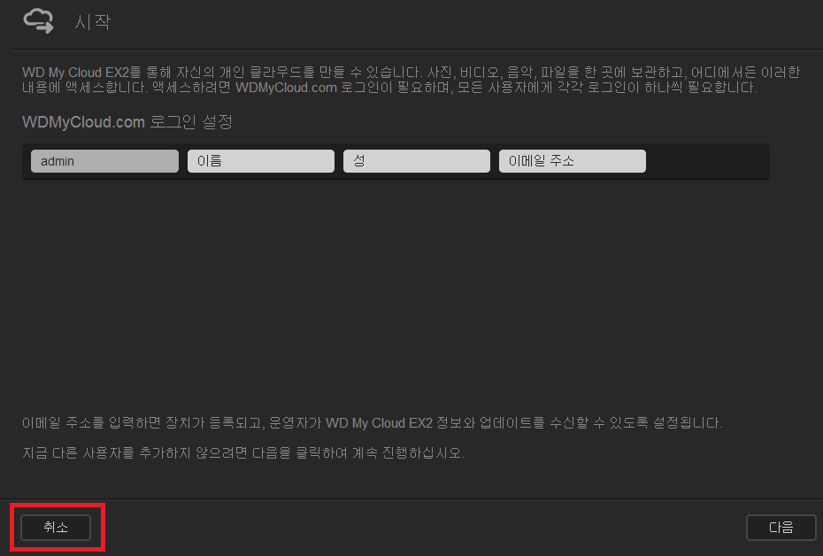 ▲ 그런데 한참을 기다려도 첫화면으로 안돌아오길래 주소창에 http://wdmcloudex2 를 넣어주니 바로 들어갑니다 ^^;;