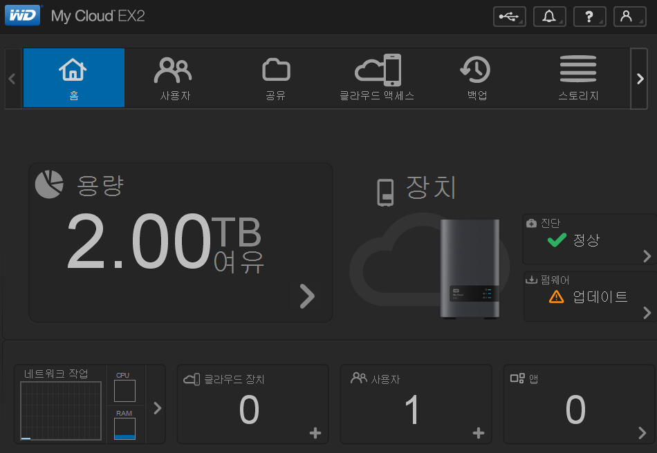 WD My Cloud EX2 메뉴편 간단 사용기