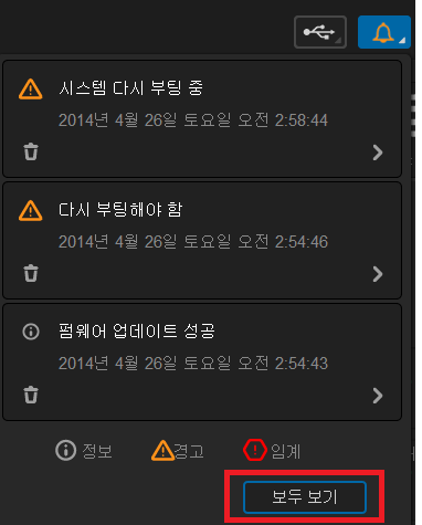 ▲ 첫화면의 오른쪽 위에 종? 모양을 누르면 각종 경고 및 메세지를 볼 수 있습니다.