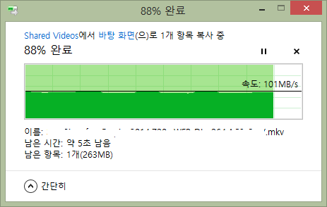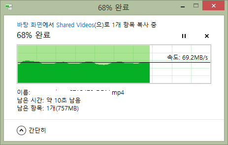윈도우 네트워크 공유에서 볼 수 있는 속도를 체크해봤습니다.