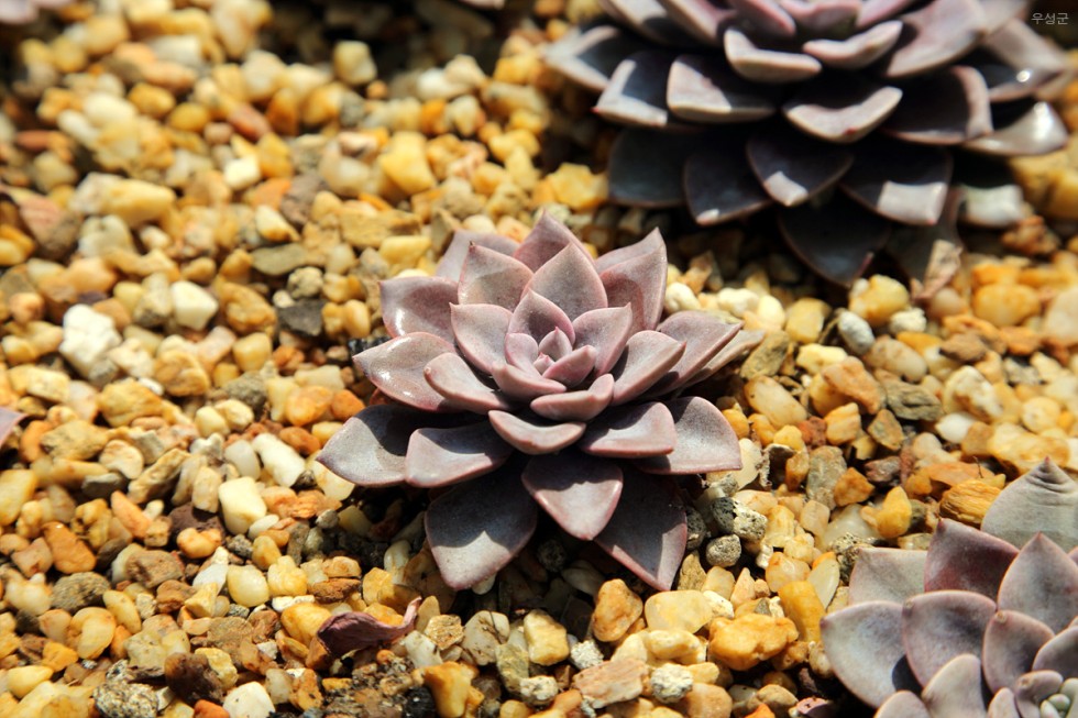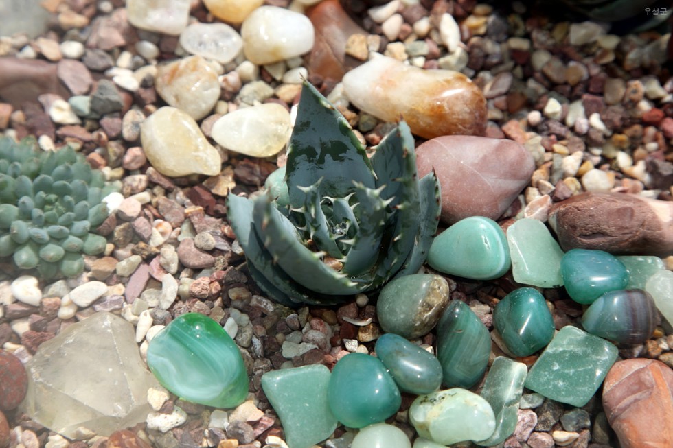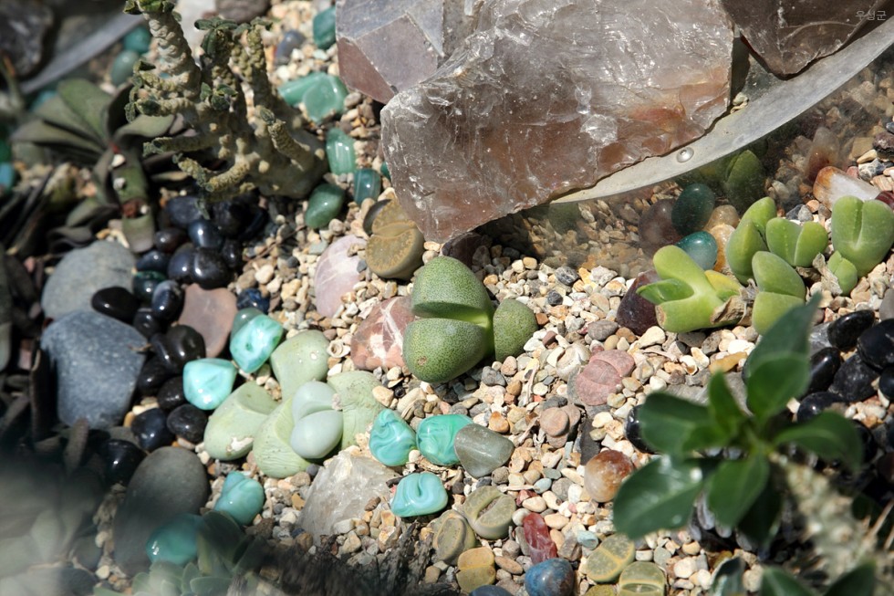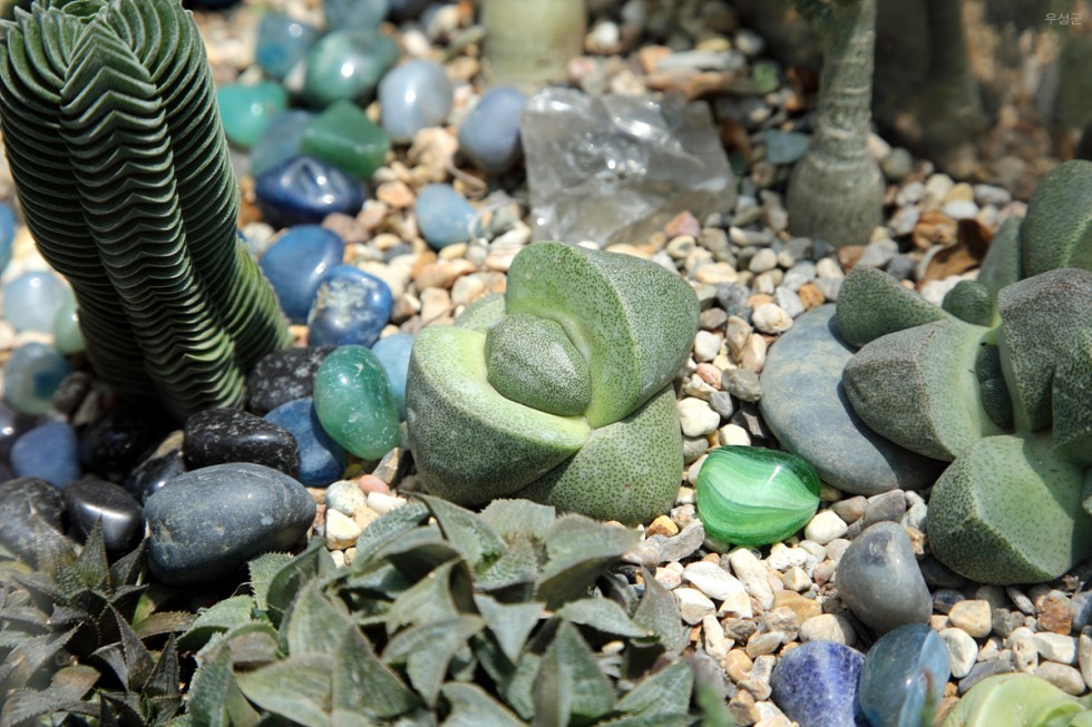 ▲ 돌과 함께 놓여있는 식물. 귀요미예요.