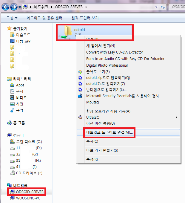 그래서 오드로이드에 삼바서버를 설치하면 윈도우에서 접속이 가능하죠.