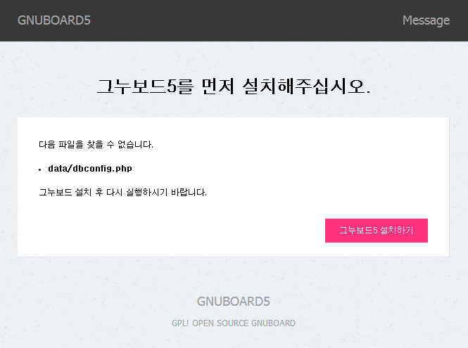 라고 뜹니다. 오른쪽 밑에 그누보드5 설치하기를 누릅니다.
