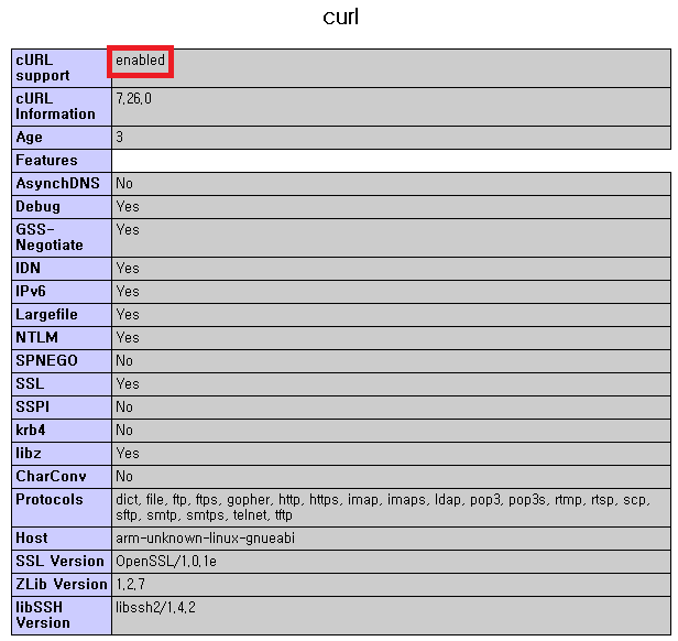 curl을 이용할 수 있나 확인을 위해서 그누보드 관리자모드에서 phpinfo()를 보시고