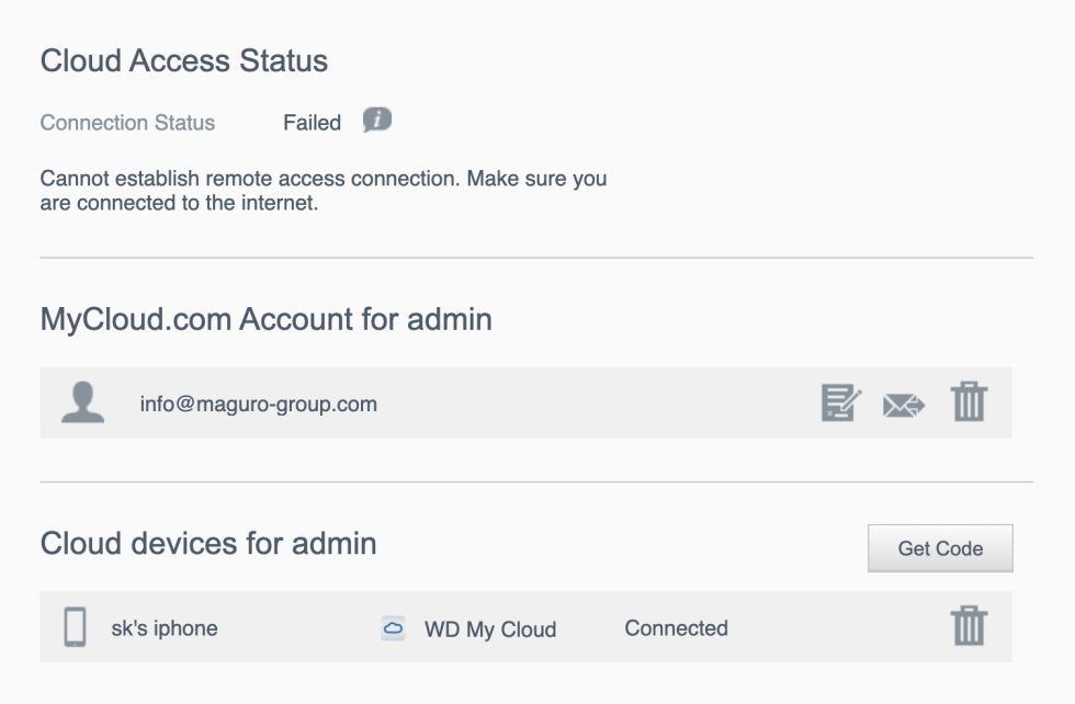 mycloud.com account association (default = not configured)